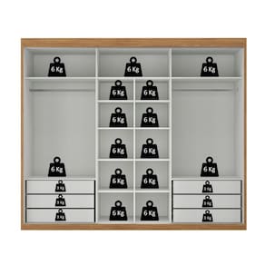 Caracter?sticas: Estrutura de MDP 12mm e 15mm 3 Portas de Correr 6 Gavetas internas Corredi?as telesc?picas Cabideiro em Alum?nio Prateleira suporta 6kg Gavetas suporta 3kg