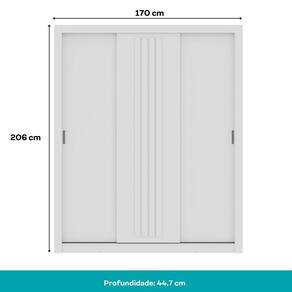 Tipo de Porta: Correr | Altura (cm): 206 cm | Portas: 3 | Profundidade (cm): 46 cm | Cor: Branco | Cor Via : Branco | Material para Filtro: Madeira | Estado de Origem: RS | Família da Cor: Branco | Gavetas: 0 | Peso do produto (Kg): 85,9 | Tamanho do Guarda-Roupas: Casal | Largura do produto (cm): 170 cm | Material: MDP | Tipo de Guarda Roupa: Casal | Altura do Produto com Embalagem (cm): 59,8 cm | Largura do Produto com Embalagem (cm): 210,8 cm | Comprimento do Produto com Embalagem (cm): 22,1 cm | Peso do Produto com Embalagem (kg): 90,20 Kg | Produto precisa de Montagem?: Sim, o produto é enviado desmontado e acompanha manual com instruções para a montagem. A empresa Móveis Carraro não realiza o de montagem. | Nome do Simples no Fornecedor: Guarda Roupa Casal 3 Portas Doha Carraro Branco | Instruções/Cuidados: | Conteúdo da Embalagem: 1 Guarda Roupa Casal 3 Portas Doha Carraro Branco - 3 VOLUMES | Descrição do Tamanho: Altura: 206 cm | Largura: 120 cm | Profundidade: 46,0 cm | PrazoExp: 2