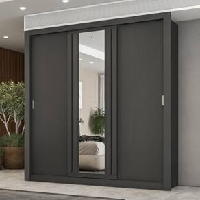 Com 3 portas de correr, sendo a central com esplho, divididas em 3 partes internase 2 gavetas, este produto oferece acesso fácil e organização eficiente.