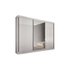 Guarda Roupa Casal 3 Portas de Correr e 8 Gavetas c/ 1 Espelho Diamond/Toulon Plus Branco - Novo Horizonte
