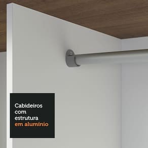 Ótimo espaço interno e organização: Ideal para um casal, possui diversos nichos e quatro gavetas que facilitam a organização de roupas, calçados e acessórios. O tubo cabideiro metálico é resistente e perfeito para pendurar roupas longas.