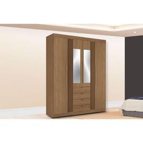 Material do Calceiro - Calceiro Metálico Material dos Cabideiros - Cabideira Metálico Tipo de Porta do Guarda-Roupa - Portas de Bater Material das Portas - Portas em MDP Quantidade de Portas - 4 Portas de Abrir Quantidade de Portas com Espelho - 2 Portas com Espelho Tipo de Espelho - Espelho Externo Tipo de Corrediça - c/ Corrediças Telescópicas Quantidade de Gavetas - 4 Gavetas Material de Estrutura Fundo Gaveta - Em HDF Material das Prateleiras - Prateleiras em MDP
