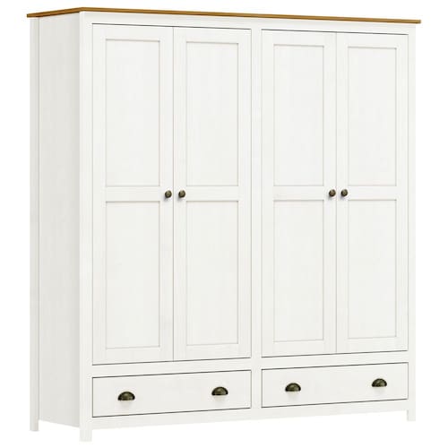Fabricado em madeira maciça de alta resistência, esse guarda roupa 4 portas e 2 gavetas prova que espaços compactos podem ser incrivelmente funcionais e cheios de estilo. Com um cabideiro interno inteligente e prateleiras estratégicas, esse guarda roupa americano se adapta às suas necessidades - seja para organizar camisas, calças ou acessórios. Para completar, as gavetas inferiores mantêm itens pessoais sempre à mão, mas discretos, enquanto os puxadores em concha acrescentam um toque especial ao design.