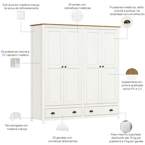 Guarda Roupa Casal 4 Portas 2 Gavetas Madeira Maciça Mazzaro F06 Branco Freijó - Lyam Decor - Branco | Freijó