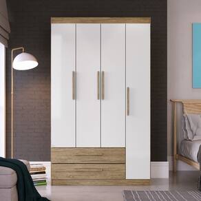 O novo guarda-roupa RP4021 é essencial para você organizar suas roupas, são 4 portas, 2 gavetões inferiores, cabideiro e prateleiras , tudo para deixar o seu espaço organizado. Os puxadores são diferenciados com personalidade única, é perfeito para quem precisa otimizar espaços mantendo a elegância do ambiente, proporcionando organização do seu dormitório de forma compacta e funcional. Todas as peças são numeradas, para facilitar a montagem do produto. Acabamento da Prateleira: Pintura UV Escala de Brilho da Prateleira: Fosco Possui Cabideiros: 01 Acabamento da Gaveta: Pintura UV Escala de Brilho da Gaveta: Fosco Material do Puxador da Gaveta: MDP Possui Organizador de Gaveta: Não Acabamento da Porta: Pintura UV Escala de Brilho da Porta: Semi-Brilho Material do Puxador da Porta: MDP Ambiente Principal: Quarto codigo_ean: 7900288064837 Complexidade da Montagem: Média: pode ser montado por mais de uma pessoa e/ou necessite de maior conhecimento para montagem Cor: Wood/Branco Brilho Cor da Porta: Branco Cor do Produto: Wood/Branco Brilho Cor do Puxador: Bege Cor Flex: Não Cor Interna: Wood Escala de Brilho: Fosco Espessura da Estrutura (mm): 15 mm Espessura das Portas (mm): 15 mm Espessura das Prateleiras (mm): 12 mm Espessura do Fundo (mm): 12 mm Espessura do Fundo das Gavetas (mm): 2,8 mm Gaveta com Chave: Não Itens Inclusos: 1 Guarda Roupa + Kit Ferragens + Manual de Montagem Linha ou Coleção: Guarda - roupa Manual de Montagem e Instalação: https://cdn2.madeiramadeira.com.br/atributo/decibal/2679117-1091-17392809599557.pdf Marca: Decibal Material da Gaveta: MDP Material da Porta: MDP Material da Prateleira: MDP Material Principal: MDP modular: Não Montagem Flex: Não Necessita Montagem: Sim Origem do Produto: Nacional Peso: 60,61 kg Peso Máximo por Gaveta: 2 kg Peso Máximo por Prateleira: 3 kg Porta Janelada: Não Possui Calceiros: Não Possui Capelinha: Não Possui Espelho: Não Possui Ganchos: Não Possui Nichos: Não Possui Pés: Não Possui Portas: Sim Possui Prateleiras: Sim Quantidade de Cabideiros: 01 Cabideiro Quantidade de Gavetas: 02 Gavetas Quantidade de Prateleiras: 04 Prateleiras Recomendações de Uso, Manutenção e Limpeza: Utilizar pano umedecido com água Sistema de Montagem: Parafusos, pregos, cavilhas, dobradiças e corrediças Tipo de Corrediça da Gaveta: Metálica Simples Tipo de Dobradiça/Corrediça da Porta: Metálica Tipo de Gaveta: Externa Tipo de Guarda-Roupa: Solteiro Tipo de Puxador da Gaveta: Externo Tipo de Puxador da Porta: Externo