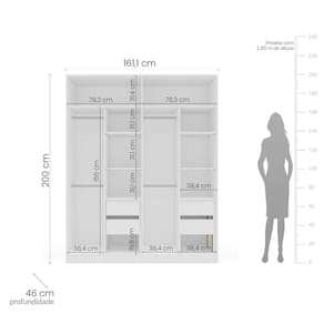 O Guarda-Roupa Madrid 4 Portas de Bater da Politorno Móveis é a escolha ideal para quem busca organização, design moderno e excelente aproveitamento de espaço: com 200 cm de altura, 161,1 cm de largura e 46 cm de profundidade, ele oferece uma estrutura funcional que se adapta perfeitamente a quartos de diferentes tamanhos. Seu grande diferencial está nos puxadores embutidos no próprio móvel, uma forte tendência de mercado que garante visual clean, sofisticado e atemporal, além de mais praticidade no uso diário. O acabamento em pintura UV proporciona maior durabilidade, resistência ao desgaste e um toque uniforme de alta qualidade, valorizando ainda mais o móvel. Disponível em 8 variações de cores, o Guarda-Roupa Madrid permite total personalização do ambiente. Acabamento da Prateleira: Pintura UV Escala de Brilho da Prateleira: Semi-Fosco Possui Cabideiros: Sim Acabamento da Gaveta: Pintura UV Possui Organizador de Gaveta: Não Acabamento da Porta: Pintura UV Escala de Brilho da Porta: Semi-Fosco Material do Puxador da Porta: MDP Ambiente Principal: Quarto codigo_ean: 7900288307255 Complexidade da Montagem: Média: pode ser montado por mais de uma pessoa e/ou necessite de maior conhecimento para montagem Cor: Branco Cor da Porta: Branco Cor do Produto: Branco Cor Interna: Branco Escala de Brilho: Semi-Fosco Espessura da Estrutura (mm): 15 mm Espessura das Portas (mm): 15 mm Espessura das Prateleiras (mm): 15 mm Espessura do Fundo (mm): 3 mm Espessura do Fundo das Gavetas (mm): 3 mm Itens Inclusos: 1 Guarda-Roupa, Kit Ferragens, Manual de Montagem e Termo de Garantia Linha ou Coleção: Madrid Manual de Montagem e Instalação: https://product-hub-prd.madeiramadeira.com.br/605128950/documents/db2645cb-7abc-4380-9672-80f8177fb0363344423622417659793148862.pdf Marca: Politorno Material da Gaveta: MDP Material da Porta: MDP Material da Prateleira: MDP Material Principal: MDP modular: Não Necessita Montagem: Sim Origem do Produto: Nacional Peso: 76,77 kg Peso Máximo por Gaveta: 5 kg Peso Máximo por Prateleira: 5 kg Possui Calceiros: 02 Possui Espelho: Não Possui Pés: Não Possui Portas: Sim Possui Prateleiras: Sim Produto Montado: Sim Quantidade de Cabideiros: 02 Cabideiros Quantidade de Gavetas: 04 Gavetas Quantidade de Prateleiras: 08 Prateleiras Recomendações de Uso, Manutenção e Limpeza: Utilize um pano macio umedecido com água e sabão neutro, seguido de pano seco. Não utilize produtos químicos ou abrasivos para limpeza, pois estes danificam o revestimento do móvel. Sistema de Montagem: Cavilha, Parafuso, Minifix e prego. Tipo de Corrediça da Gaveta: Metálica Telescópica Tipo de Dobradiça/Corrediça da Porta: Metálica Tipo de Gaveta: Interna Tipo de Guarda-Roupa: Casal Tipo de Puxador da Gaveta: Não Possui Tipo de Puxador da Porta: Embutido Marca: Não Informado