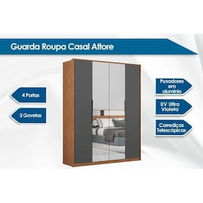 Guarda Roupa Casal 4 Portas C/ 2 Espelhos Attore Amêndola Touch - Demóbile