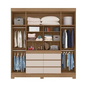 O Guarda-Roupa Casal Cádis é uma solução funcional para organização do quarto, oferecendo bom aproveitamento interno e estrutura resistente. Seu design permite acomodar roupas longas, peças dobradas e acessórios, atendendo às necessidades do dia a dia.