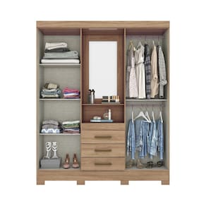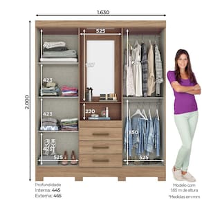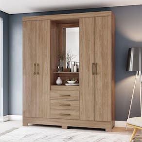 O Guarda-Roupa B24 une design e funcionalidade. O ambiente fica aconchegante e moderno. Foi desenvolvido para oferecer praticidade no seu dia a dia, possui 1 espelho, 4 portas e 3 gavetas é compacto, mas espaçoso, perfeito para a organização das roupas. Os puxadores são de ABS, os cabideiros de madeira são revestidos. Produzido em MDP 15mm.
