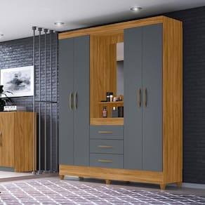 Guarda Roupa Casal 4 portas com espelho 3 gavetas Capri - Cinza