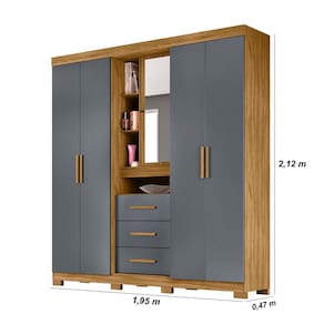 O Guarda Roupa Eldorado possui design sofisticado para oferecer praticidade e beleza ao seu quarto. Conta com 4 portas, painel central com espelho e giratório, gavetas recuadas, excelente divisão interna, com prateleiras, maleiro, cabideiro, calceiro, espaço para colocar sapatos e estrutura em 100% Mdp e acabamento em Uv que tornam o produto mais resistente e duradouro.