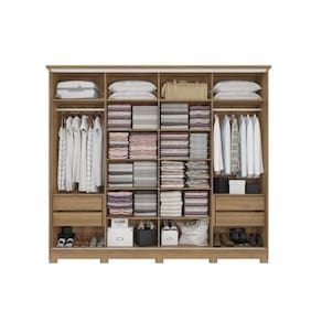 Guarda Roupa Casal 4 Portas de Correr e 4 Gavetas c/ Espelho e Pés CB01N565 Nogueira/Verde Oliva - Kappesberg