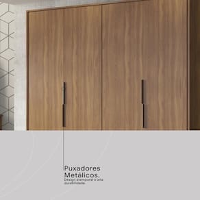 O Guarda Roupa Casal Attore da Demóbile oferece design atemporal com portas inteiriças e puxadores metálicos elegantes, trazendo sofisticação ao ambiente. Com ampla capacidade, ele inclui cabideiros para roupas longas, prateleiras para roupas dobradas, gavetas internas, espaço para sapatos e um maleiro espaçoso. O Guarda-Roupa Attore é a combinação ideal de estilo e funcionalidade para um quarto mais organizado e prático.