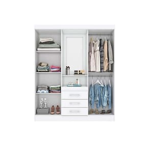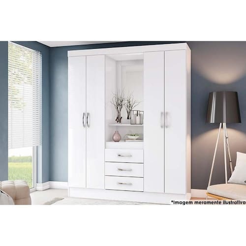Guarda Roupa Solteiro 4 Portas e 3 Gavetas c/ 1 Espelho Briz B24 Branco - Henn