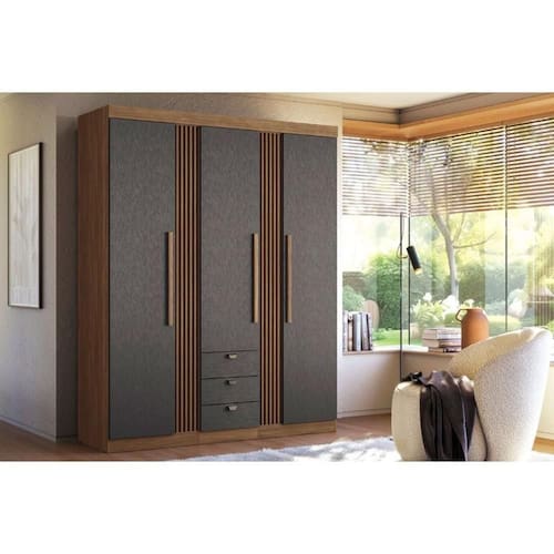 Material de Estrutura - Estrutura 100% MDP Tipo de Pintura - Texturizada Tipo de Acabamento - Acabamento Ripado Alto Padrão Material de Estrutura Fundo Guarda Roupa - Em HDF Diferenciais Guarda Roupas - Calceiro - Sapateira