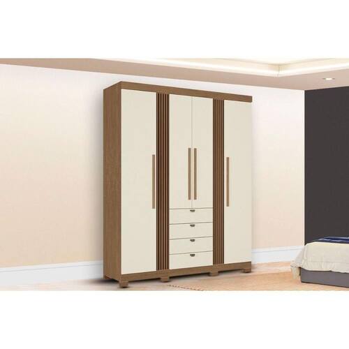 Material do Calceiro - Calceiro Metálico Material dos Cabideiros - Cabideira Metálico Tipo de Porta do Guarda-Roupa - Portas de Bater Material das Portas - Portas em MDP Quantidade de Portas - 4 Portas de Abrir Tipo de Espelho - Sem Espelho Tipo de Corrediça - c/ Corrediças Telescópicas Quantidade de Gavetas - 4 Gavetas Material de Estrutura Fundo Gaveta - Em HDF Quantidade de Pés - 8 pés Material das Prateleiras - Prateleiras em MDP