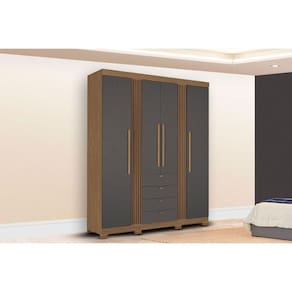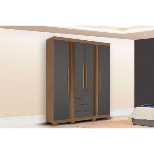 Material do Calceiro - Calceiro Metálico Material dos Cabideiros - Cabideira Metálico Tipo de Porta do Guarda-Roupa - Portas de Bater Material das Portas - Portas em MDP Quantidade de Portas - 4 Portas de Abrir Tipo de Espelho - Sem Espelho Tipo de Corrediça - c/ Corrediças Telescópicas Quantidade de Gavetas - 4 Gavetas Material de Estrutura Fundo Gaveta - Em HDF Quantidade de Pés - 8 pés Material das Prateleiras - Prateleiras em MDP