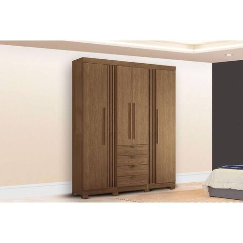 Material do Calceiro - Calceiro Metálico Material dos Cabideiros - Cabideira Metálico Tipo de Porta do Guarda-Roupa - Portas de Bater Material das Portas - Portas em MDP Quantidade de Portas - 4 Portas de Abrir Tipo de Espelho - Sem Espelho Tipo de Corrediça - c/ Corrediças Telescópicas Quantidade de Gavetas - 4 Gavetas Material de Estrutura Fundo Gaveta - Em HDF Quantidade de Pés - 8 pés Material das Prateleiras - Prateleiras em MDP