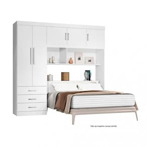 Características: Estrutura em MDP e MDF Pintura UV 5 Portas 3 Gavetas Baú Prateleira Corrediça metálica Cabideiro em madeira Indicação para colchão de 1,38m x 1,88m Observação: Não acompanha cama/colchão
