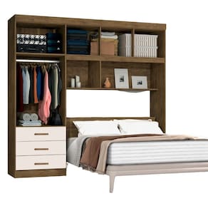 Características: 3 Gavetas 5 Portas 3 Prateleiras Baú Acabamento em pintura UV Cabideiro em madeira Estrutura em MDP/MDF Indicação para colchão de 1,38m x 1,88m Não acompanha cama/colchão