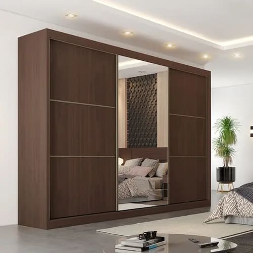 Guarda Roupa Casal 6 Gavetas com Espelho - Bragança-Ipê - Móveis Europa - Marrom