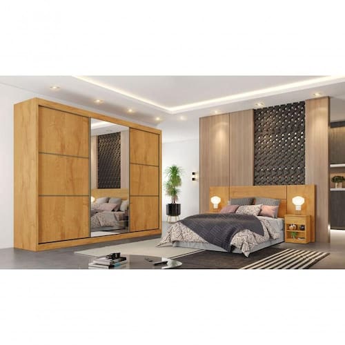 Guarda Roupa Casal 6 Gavetas com Espelho - Bragança-Peroba - Móveis Europa