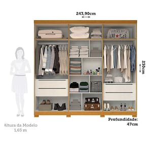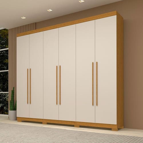 Clássico e Moderno, o Roupeiro Buganvílea é encantador. Sua estrutra é 100% MDF e acabamento em pintura UV, garantindo maior resistência e qualidade. Possui espaço interno amplo e bem distribuido com várias prateleiras, 4 gavetas com corrediças telescópicas, cabideiros em alumínio que oferecem mais facilidade na organização do dia a dia. Aproveite você também essa oportunidade. Acabamento da Prateleira: Pintura UV Escala de Brilho da Prateleira: Semi-Brilho Possui Cabideiros: Sim Acabamento da Gaveta: Pintura UV Escala de Brilho da Gaveta: Semi-Brilho Possui Organizador de Gaveta: Não Acabamento da Porta: Pintura UV Escala de Brilho da Porta: Semi-Brilho Material do Puxador da Porta: MDF Acabamento dos Pés: Pintura Altura dos Pés: 5 cm Ambiente Principal: Quarto codigo_ean: 7909903764756 Complexidade da Montagem: Alta: deve ser montado por um montador especializado Cor: Cinamomo/Off White Cor do Produto: Cinamomo/Off White Cor Flex: Não Cor Interna: Linho Escala de Brilho: Semi-Brilho Gaveta com Chave: Não Guarda-Roupa Suporta Até (kg): 100 kg Informações Complementares: Cabideiros em alumínio. Itens Inclusos: 1 Guarda Roupa, Kit Ferragens e Manual de Montagem Linha ou Coleção: Buganvílea Manual de Montagem e Instalação: https://product-hub-prd.madeiramadeira.com.br/917932/documents/93ed0284-e543-40e9-a848-481b833d5f931169178roupeironubia06ptsx.pdf Material da Gaveta: MDF Material da Porta: MDF Material da Prateleira: MDF Material dos Pés: ABS Material Principal: MDF modular: Não Montagem Flex: Não Necessita Montagem: Sim Origem do Produto: Nacional Peso: 179,5 kg Peso Máximo por Gaveta: 10 kg Peso Máximo por Prateleira: 5 kg Possui Calceiros: Não Possui Espaço para Vestidos Longos: Não Possui Espelho: Não Possui Espelho Interno: Não Possui Ganchos: Não Possui Nichos: Não Possui Painel de TV: Não Possui Pés: 08 Possui Portas: Sim Possui Prateleiras: Sim Possui Sapateira: Não Produto Montado: Sim Quantidade de Gavetas: 04 Gavetas Quantidade de Prateleiras: 06 Prateleiras Recomendações de Uso, Manutenção e Limpeza: Para limpar não use nenhum tipo de produto, tais como sabão, esponja de aço, álcool e lustra-móveis. Use somente uma flanela seca. Não molhe nem exponha o móvel à umidade ou a luz solar diretamente ou outra forma de calor. Não encoste o móvel na parede. Não o arreste. Se precisar mudar o móvel de lugar, esvazie por completo o móvel, não o arraste, com ajuda de outras pessoas suspenda o móvel de forma segura e o posicione no lugar desejado. Sapatas Niveladoras: Não Sistema de Montagem: Parafusos, Minifix e Cavilhas. Suporta Até (kg): 100 kg Tipo de Corrediça da Gaveta: Metálica Telescópica Tipo de Dobradiça/Corrediça da Porta: Metálica Tipo de Gaveta: Interna Tipo de Guarda-Roupa: Casal Tipo de Puxador da Gaveta: Não Possui Tipo de Puxador da Porta: Externo