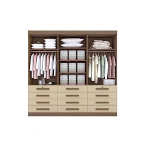 Características:- Estrutura em MDP- Portas, frentes de gavetas e molduras em MDF- Gavetas com corrediças telescópicas- Profundidade da gaveta: 40 cm- Suporte cabide metálico- Duas gavetas com chave- Produzido com chapa de 15mm- 12 Gavetas- 3 opções de montagens na parte interna Acabamento alto brilho