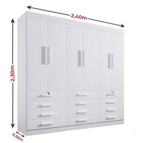 Características:- Estrutura em MDP- Portas, frentes de gavetas e molduras em MDF- Gavetas com corrediças telescópicas- Profundidade da gaveta: 40 cm- Suporte cabide metálico- Duas gavetas com chave- Produzido com chapa de 15mm- 12 Gavetas- 3 opções de montagens na parte interna Acabamento alto brilho