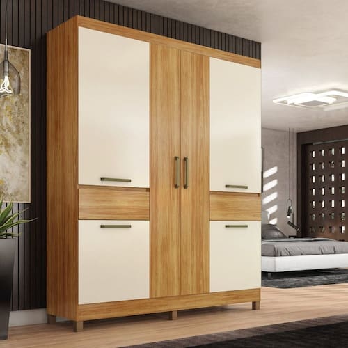PVC que ajudam proteger o móvel da umidade e oferecendo maior durabilidade. Acabamento da Prateleira: Pintura UV Escala de Brilho da Prateleira: Fosco Possui Cabideiros: Sim Acabamento da Gaveta: Pintura Texturizada UV Escala de Brilho da Gaveta: Fosco Possui Organizador de Gaveta: Não Acabamento da Porta: Pintura UV Escala de Brilho da Porta: Brilhante Material do Puxador da Porta: Plástico Acabamento dos Pés: Pintura Altura dos Pés: 10 cm Altura Máxima dos Pés: 10.0000 Ambiente Principal: Quarto codigo_ean: 7900288171368 Complexidade da Montagem: Alta: deve ser montado por um montador especializado Cor: Cinamon/Off-White Cor da Porta: Off White Cor do Produto: Cinamon/Off-White Cor do Puxador: Cromado Cor Flex: Não Cor Interna: Cinamon Escala de Brilho: Fosco Espessura da Estrutura (mm): 12 mm Espessura das Portas (mm): 12 mm Espessura das Prateleiras (mm): 12 mm Espessura do Fundo (mm): 3 mm Espessura do Fundo das Gavetas (mm): 3 mm Gaveta com Chave: Não Guarda-Roupa Suporta Até (kg): 40 kg Informações Complementares: As cores do produto podem sofrer variações de tonalidade de acordo com as configurações do seu dispositivo. Caixa revestida por plástico termoencohível e peças separadas por isomanta. O produto será entregue desmontado, acompanhado de manual de montagem e Itens Inclusos: 1 Guarda-Roupa, Ferragens e Manual de Montagem Linha ou Coleção: Mauá Manual de Especificação Técnica: https://product-hub-prd.madeiramadeira.com.br/751995473/documents/ba7a0dc0-f59b-41c7-81f1-c945486850702989131302817495737011273.pdf Manual de Montagem e Instalação: https://product-hub-prd.madeiramadeira.com.br/751995473/documents/8722a55b-92e8-48f3-af04-d4f5447afb4c78719manualdemontagem62760.pdf Marca: Demóbile Material da Gaveta: MDP Material da Porta: MDP Material da Prateleira: MDP Material dos Pés: PVC Material Principal: MDP modular: Não Montagem Flex: Não Necessita Montagem: Sim Nicho com Cabideiro: Não Origem do Produto: Nacional Peso: 77,55 kg Peso Máximo por Gaveta: 5 kg Peso Máximo por Prateleira: 5 kg Porta Janelada: Não Possui Calceiros: Não Possui Capelinha: Não Possui Espaço para Vestidos Longos: Não Possui Espelho: Não Possui Espelho Interno: Não Possui Ganchos: Não Possui iluminação: Não Possui Nichos: Não Possui Painel de TV: Não Possui Penteadeira: Não Possui Pés: 06 Possui Portas: Sim Possui Prateleiras: Sim Possui Sapateira: Não Produto Montado: Sim Quantidade de Cabideiros: 02 Cabideiros Quantidade de Gavetas: 02 Gavetas Quantidade de Prateleiras: 03 Prateleiras Recomendações de Uso, Manutenção e Limpeza: Utilizar flanela seca. Sapatas Niveladoras: Não Sistema de Montagem: Parafusos/Cavilhas Suporta Até (kg): 40 kg Tipo de Corrediça da Gaveta: Metálica Simples Tipo de Dobradiça/Corrediça da Porta: Metálica Tipo de Gaveta: Externa Tipo de Guarda-Roupa: Casal Tipo de Puxador da Gaveta: Embutido Tipo de Puxador da Porta: Externo