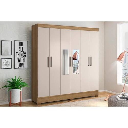 Guarda Roupa Casal 6 Portas (2 c/ Espelho) e 3 Gavetas Prático Amêndola/Off White - Demóbile