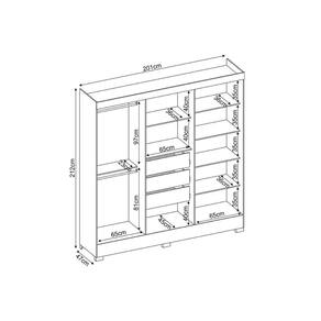 Dimensões(Cm): Comprimento(Profundidade): 47cm x Largura: 201cm x Altura: 212cm