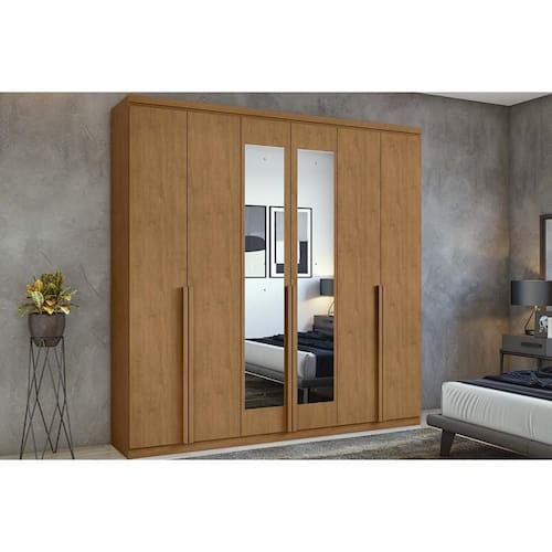 Guarda Roupa Casal 6 Portas (2 c/ Espelho) e 4 Gavetas Alonzo New Amêndoa - Lopas