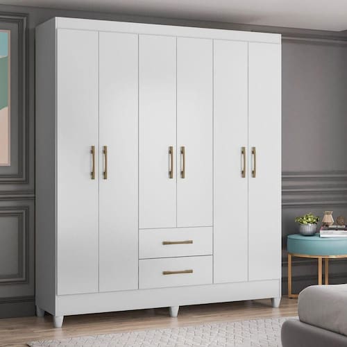 Guarda Roupa Casal 6 Portas 2 Gavetas 153x182cm Panamá Moval Cor:branco
