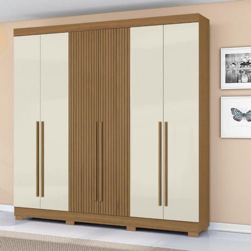 Características: Estrutura em MDP 15mm e 12 mm 6 Portas 2 Gavetas Prateleiras Nicho Puxadores de MDF em 25mm Cabideiro de madeira Corrediça metálica Acabamento texturizado