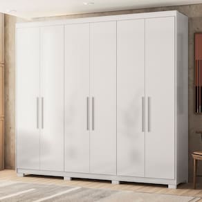 Guarda Roupa Casal 6 Portas 2 Gavetas 4 Prateleiras Venice com Pés Branco - Demóbile