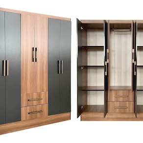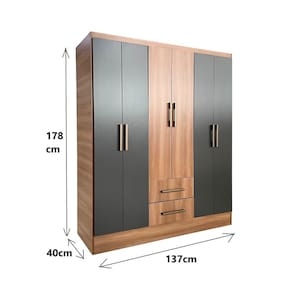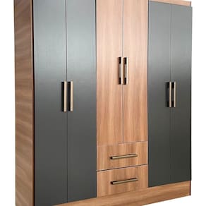 Guarda Roupa Casal 6 Portas 2 Gavetas 8 Prateleiras 1 Cabideiro California Manchester/Grafite - Cinza