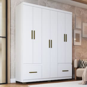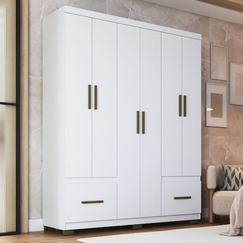 Caracter?sticas: 6 portas: permitem f?cil acesso e melhor organiza??o das roupas e acess?rios 2 gavetas externas com corredi?as met?licas: proporcionam abertura suave ?tima distribui??o de prateleiras: garante aproveitamento eficiente do espa?o interno Cabideiro em alum?nio: resistente e ideal para manter pe?as longas bem-organizadas P?s Acabamento acetinado: confere sofistica??o, durabilidade e f?cil integra??o com diferentes estilos de decora??o Gavetas suportam peso de at? 03 kg Prateleiras suportam peso de at? 05 kg