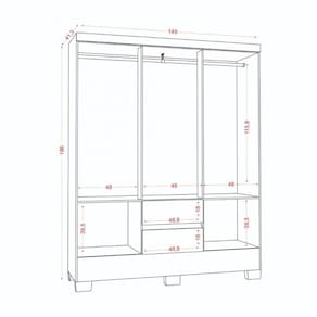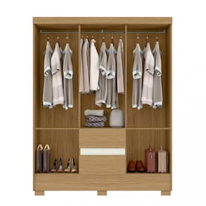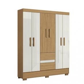 Características: Estrutura em MDP de 12mm e 15mm 6 Portas Dobradiças metálicas Cabideiro de madeira revestido em PVC Puxadores em MDF 25mm 2 Gavetas Corrediças metálicas Acabamento em verniz texturizado fosco
