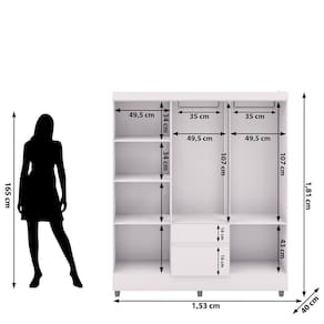 • Pintura: Cabideiro de Madeira Ajustável; Puxador Astra 128mm; Possui 4 Prateleiras;