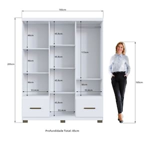 Caracteristicas: 6 portas: permitem facil acesso e melhor organizacao das roupas e acessorios 2 gavetas externas com corredicas metalicas: proporcionam abertura suave Otima distribuicao de prateleiras: garante aproveitamento eficiente do espaco interno Cabideiro em aluminio: resistente e ideal para manter pecas longas bem-organizadas Pes Acabamento acetinado: confere sofisticacao, durabilidade e facil integracao com diferentes estilos de decoracao Gavetas suportam peso de ate 03 kg Prateleiras suportam peso de ate 05 kg
