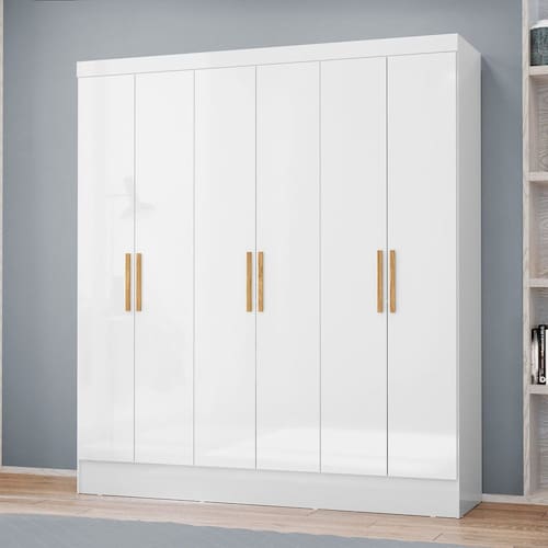 O Guarda Roupa Gliese da Espresso Móveis apresenta designer prático e moderno associado a uma ótima divisão interna distribuídas em suas seis portas de abrir, prateleiras , 3 cabideiros e 2 espaçosas gavetas internas. Acabamento da Prateleira: Pintura Texturizada UV Escala de Brilho da Prateleira: Semi-Brilho Possui Cabideiros: 03 Acabamento da Gaveta: Pintura UV Possui Organizador de Gaveta: Não Acabamento da Porta: Pintura Texturizada UV Escala de Brilho da Porta: Semi-Brilho Material do Puxador da Porta: MDF Altura dos Pés: 5 cm Ambiente Principal: Quarto codigo_ean: 7909903939734 Complexidade da Montagem: Média: pode ser montado por mais de uma pessoa e/ou necessite de maior conhecimento para montagem Cor: Branco Cor do Produto: Branco Cor Interna: Ártico Escala de Brilho: Semi-Brilho Gaveta com Chave: Não Guarda-Roupa Suporta Até (kg): 60 kg Itens Inclusos: 1 Guarda roupa, ferragens e manual Linha ou Coleção: Essencial Manual de Montagem e Instalação: https://product-hub-prd.madeiramadeira.com.br/952769/documents/5de0633c-7024-4b8f-a7c2-22d44859dd692379091539817272678557738.pdf Material da Gaveta: MDP Material da Porta: MDP Material da Prateleira: MDP Material dos Pés: Plástico Material Principal: MDP modular: Não Necessita Montagem: Sim Origem do Produto: Nacional Peso: 85,4 kg Peso Máximo por Gaveta: 3 kg Peso Máximo por Prateleira: 5 kg Possui Calceiros: Não Possui Espaço para Vestidos Longos: Não Possui Espelho: Não Possui Espelho Interno: Não Possui Ganchos: Não Possui iluminação: Não Possui Nichos: Não Possui Painel de TV: Não Possui Pés: 06 Possui Portas: Sim Possui Prateleiras: Sim Possui Sapateira: Não Produto Montado: Sim Quantidade de Gavetas: 02 Gavetas Quantidade de Prateleiras: 04 Prateleiras Recomendações de Uso, Manutenção e Limpeza: Para manter seu móvel novo por muito mais tempo, evite locais úmidos, mantenha-o distante de líquidos e de fontes de calor. Evite a exposição prolongada ao sol. Para limpá-lo com segurança utilize uma flanela seca sem produtos abrasivos e nem lustra móveis. Sistema de Montagem: Parafusos e Cavilhas Suporta Até (kg): 60 kg Tipo de Corrediça da Gaveta: Metálica Simples Tipo de Dobradiça/Corrediça da Porta: Aço Tipo de Gaveta: Interna Tipo de Guarda-Roupa: Casal Tipo de Puxador da Gaveta: Embutido Tipo de Puxador da Porta: Externo