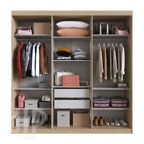 Corrediças metálicas e cabideiros redondos. Diversas prateleiras