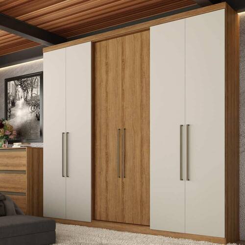 O Guarda-Roupa Presence da THB é feito com MDP 12mm e 15mm, sua pintura é feita com impressão com verniz UV e possui um acabamento acetinado, proporcionando um móvel de qualidade, resistência e durabilidade. A praticidade está em cada detalhe, nas suas 5 prateleiras que suportam entre 3kg e 5kg, nos 2 cabideiros de alumínio, nos 2 maleiros embutidos e nas 2 gavetas com corrediças metálicas que suportam até 5kg! Cor: Almendra