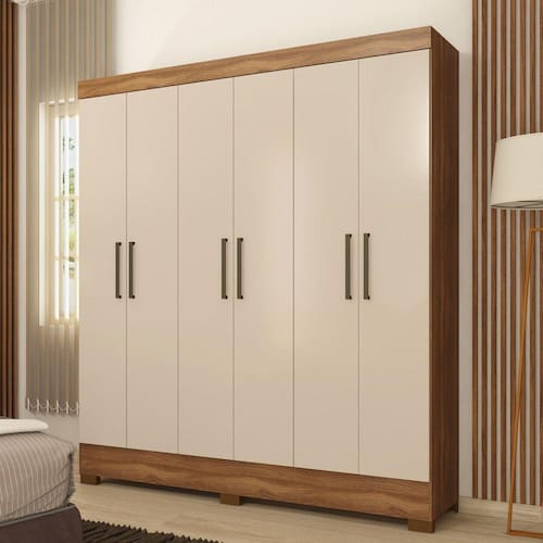 Roupeiro que se destaca pela configuração interna, oferecendo excelente distribuição. Com duas gavetas e diversas possibilidades para utilização das prateleiras, e três cabideiros metálicos para roupas longas. Acompanha pés em PVC de série, que facilitam a limpeza do ambiente. O móvel ‚confeccionado em MDP de alto padrão e possui acabamento resistente, proporcionado por sua pintura UV. Para garantir a qualidade do produto dentro da embalagem, as caixas são revestidas por um plástico termoencolhível e todas as peças são separadas por isomanta, tudo para preservar e evitar o atrito entre as peças dentro da embalagem. Você contará também com um manual com o passo a passo para auxiliar no momento da sua montagem. Acabamento da Prateleira: Pintura UV Escala de Brilho da Prateleira: Fosco Possui Cabideiros: 03 Acabamento da Gaveta: Pintura UV Escala de Brilho da Gaveta: Semi-Brilho Material do Puxador da Gaveta: Possui Organizador de Gaveta: Não Acabamento da Porta: Pintura UV Escala de Brilho da Porta: Semi-Brilho Material do Puxador da Porta: Plástico Acabamento dos Pés: Acompanha Cama Auxiliar: Acompanha Colchão: Altura da Cama: Altura do Espelho: Altura do Espelho 01: Altura do Espelho 02: Altura do Espelho 03: Altura do Espelho 04: Altura do Espelho 05: Altura do Espelho 06: Altura dos Pés: 5 Ambiente Principal: Quarto Cama Auxiliar Acompanha Colchão: Cama Auxiliar Suporta Até (kg): Cama Suporta Até (kg): Complexidade da Montagem: Média: pode ser montado por mais de uma pessoa e/ou necessite de maior conhecimento para montagem Cor: Amendola Touch/Off White Cor do Produto: Amendola Touch/Off White Cor Flex: Cor Interna: Amendola Escala de Brilho: Semi-Brilho Espessura do Espelho: Fita Integrada: Formato do Espelho: Gaveta com Chave: Não Guarda-Roupa Suporta Até (kg): Informações Complementares: Itens Inclusos: 1 Guarda Roupa, Kit Ferragens e Manual de Montagem Largura da Cama: Largura do Espelho: Largura do Espelho 01: Largura do Espelho 02: Largura do Espelho 03: Largura do Espelho 04: Largura do Espelho 05: Largura do Espelho 06: Linha ou Coleção: Manual de Especificação Técnica: Manual de Montagem e Instalação: https://cdn2.madeiramadeira.com.br/atributo/demobile-novo/1196362-62320-guarda-roupa-06-portas-02-gav-verso.pdf Material da Gaveta: MDP Material da Porta: MDP Material da Prateleira: MDP Material dos Pés: PVC Material Principal: MDP Montagem Flex: Necessita Montagem: Sim Origem do Produto: Nacional Peso: 84.59999999999999 Peso Máximo por Gaveta: 3 Peso Máximo por Prateleira: 5 Possui Calceiros: Não Possui Espaço para Vestidos Longos: Possui Espelho: Não Possui Espelho Interno: Possui Ganchos: Possui iluminação: Possui Painel de TV: Possui Pés: 06 Possui Portas: 06 Possui Prateleiras: 03 Possui Sapateira: Profundida de Cama: Quantidade de Espelho: Recomendações de Uso, Manutenção e Limpeza: Utilizar flanela seca Sapatas Niveladoras: Não Sistema de Montagem: Parafusos e Cavilhas Tamanho do Colchão Indicado (L x C): Tamanho do Colchão Indicado Cama Auxiliar: Tipo de Corrediça da Gaveta: Metálica Simples Tipo de Dobradiça/Corrediça da Porta: Aço Tipo de Estrado: Tipo de Fixação do Espelho: Tipo de Gaveta: Interna Tipo de Guarda-Roupa: Casal Tipo de Madeira Maciça: Tipo de Madeira Maciça da Gaveta: Tipo de Madeira Maciça da Porta: Tipo de Madeira Maciça da Prateleira: Tipo de Madeira Maciça do Puxador da Gaveta: Tipo de Madeira Maciça do Puxador da Porta: Tipo de Madeira Maciça dos Pés: Tipo de Puxador da Gaveta: Não Possui Tipo de Puxador da Porta: Externo