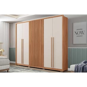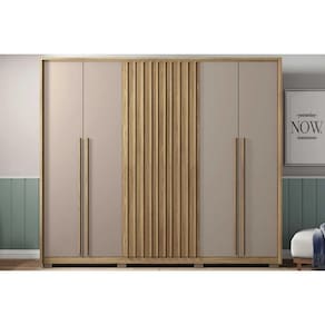 Guarda Roupa Casal 6 Portas (2 Ripadas) e 6 Gavetas New Comodus Buriti/Fendi - Caemmun