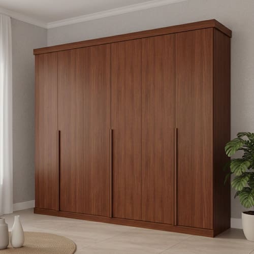 O Guarda Roupa Linhares 100% MDF agrega elegância ao seu ambiente. Possui dobradiças slow motion nas portas que proporcionam um fechamento suave, puxadores em MDF revestidos na cor do produto e gavetas com vidro temperado e corrediças telescópicas que garantem maior durabilidade. Os cabideiros são em alumínio com suportes metálicos e na montagem do lado direito é possível optar por calceiro ou espaço para roupas longas. Acabamento da Prateleira: Pintura UV Escala de Brilho da Prateleira: Semi-Brilho Possui Cabideiros: Sim Acabamento da Gaveta: Pintura UV Escala de Brilho da Gaveta: Semi-Brilho Material do Puxador da Gaveta: Alumínio Possui Organizador de Gaveta: Não Acabamento da Porta: Pintura UV Escala de Brilho da Porta: Semi-Brilho Material do Puxador da Porta: MDF Ambiente Principal: Quarto codigo_ean: 7900288344151 Complexidade da Montagem: Alta: deve ser montado por um montador especializado Cor: Jequitiba Cor do Produto: Jequitiba Cor Interna: Jequitibá Escala de Brilho: Semi-Brilho Espessura da Estrutura (mm): 15 mm Espessura das Portas (mm): 15 mm Espessura das Prateleiras (mm): 15 mm Espessura do Fundo (mm): 2,5 mm Espessura do Fundo das Gavetas (mm): 2,5 mm Gaveta com Chave: Não Guarda-Roupa Suporta Até (kg): 100 kg Itens Inclusos: 1 Guarda-roupas, kit ferragens e manual de montagem Linha ou Coleção: Linhares Manual de Montagem e Instalação: https://product-hub-prd.madeiramadeira.com.br/367556771/documents/c99b1b02-2cb8-44a4-a2aa-b26ad39778ed3389655368017709240593457.pdf Marca: Espresso Móveis Material da Gaveta: MDF Material da Porta: MDF Material da Prateleira: MDF Material Principal: MDF modular: Não Montagem Flex: Sim, pode ser montado com 1 ou 2 calceiros. Necessita Montagem: Sim Origem do Produto: Nacional Peso: 248,4 kg Peso Máximo por Gaveta: 5 kg Peso Máximo por Prateleira: 5 kg Possui Calceiros: 02 Possui Espelho: Não Possui Pés: Não Possui Portas: Sim Possui Prateleiras: Sim Possui Sapateira: Não Produto Montado: Sim Quantidade de Cabideiros: 02 Cabideiros Quantidade de Gavetas: 06 Gavetas Quantidade de Prateleiras: 06 Prateleiras Recomendações de Uso, Manutenção e Limpeza: Para limpeza utilize somente pano limpo e macio, ligeiramente umidecido em água (apenas o bastante para remover a poeira), seguido de um pano seco. Sistema de Montagem: Parafusos altoatarraxantes, conjuntos minifix, cavilha madeira, acessórios plásticos/metálicos Suporta Até (kg): 100 kg Tipo de Corrediça da Gaveta: Metálica Telescópica Tipo de Dobradiça/Corrediça da Porta: Metálica Tipo de Gaveta: Interna Tipo de Guarda-Roupa: Casal Tipo de Puxador da Gaveta: Externo Tipo de Puxador da Porta: Externo