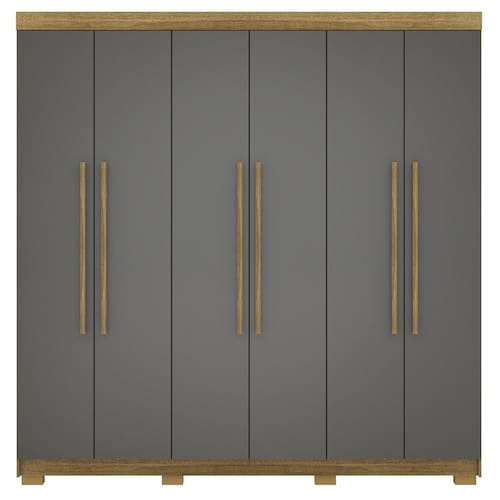 Este guarda-roupa casal conta com 6 portas com dobradiças metálicas que garantem abertura e fechamento suaves e duradouros. Possui 2 gavetas espaçosas com corrediças metálicas, perfeitas para acomodar roupas dobradas e acessórios com praticidade. Estrutura em MDP de 15mm (Laterais em MDP de 12mm e fundo em MDF de 3mm). Os 2 cabideiros de alumínio oferece mais firmeza para suas roupas penduradas, suportando o uso diário sem deformar. Contem puxadores em MDF revestido, que trazem um toque moderno ao visual, combinando perfeitamente com qualquer ambiente. Para maior estabilidade e elevação do móvel, o guarda-roupa conta com pés retangulares, que além de funcionais, dão um acabamento elegante à peça. Este móvel chegará na sua casa separado em 03 volumes.