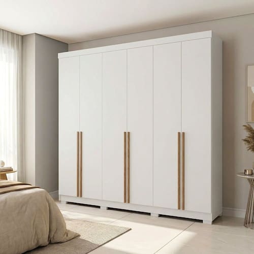 O Guarda-Roupa Florença combina elegância, resistência e amplo espaço interno para deixar seu quarto ainda mais organizado e sofisticado. Produzido 100% em MDF, oferece maior durabilidade e acabamento de alta qualidade. Seu design moderno conta com 6 portas amplas, puxadores alongados que valorizam o visual do móvel e um acabamento amadeirado que traz aconchego ao ambiente. Com excelente aproveitamento interno, o Guarda-Roupa Florença é ideal para acomodar roupas, acessórios e objetos do dia a dia com praticidade, unindo funcionalidade e estilo para transformar seu quarto em um espaço ainda mais harmonioso. Acabamento da Prateleira: Pintura UV Escala de Brilho da Prateleira: Brilhante Possui Cabideiros: Sim Acabamento da Gaveta: Pintura UV Escala de Brilho da Gaveta: Brilhante Possui Organizador de Gaveta: Não Acabamento da Porta: Pintura UV Escala de Brilho da Porta: Brilhante Material do Puxador da Porta: MDF Acabamento dos Pés: Pintura Altura dos Pés: 5 cm Altura Máxima dos Pés: 5.0000 Ambiente Principal: Quarto codigo_ean: 7900288354006 Complexidade da Montagem: Média: pode ser montado por mais de uma pessoa e/ou necessite de maior conhecimento para montagem Cor: Nevaska Cor da Porta: Off White Cor do Produto: Nevaska Cor Interna: Nevaska Escala de Brilho: Brilhante Espessura da Estrutura (mm): 15 mm Espessura das Portas (mm): 15 mm Espessura das Prateleiras (mm): 15 mm Espessura do Fundo (mm): 3 mm Espessura do Fundo das Gavetas (mm): 3 mm Gaveta com Chave: Não Guarda-Roupa Suporta Até (kg): 255 kg Itens Inclusos: 1 Guarda-Roupa, Manual de Montagem e Kit Ferragem Linha ou Coleção: Florença Manual de Montagem e Instalação: https://product-hub-prd.madeiramadeira.com.br/895267953/documents/03cb4569-7abf-44a3-9692-c71eba3662a23442247528417733166205082.pdf Marca: Móveis Meneghetti Material da Gaveta: MDF Material da Porta: MDF Material da Prateleira: MDF Material dos Pés: Plástico Material Principal: MDF modular: Não Necessita Montagem: Sim Nicho com Cabideiro: Não Origem do Produto: Nacional Peso: 217 kg Peso Máximo por Gaveta: 15 kg Peso Máximo por Prateleira: 15 kg Porta Janelada: Não Possui Calceiros: Não Possui Capelinha: Não Possui Espaço para Vestidos Longos: Não Possui Espelho: Não Possui Espelho Interno: Não Possui Ganchos: Não Possui iluminação: Não Possui Nichos: Não Possui Painel de TV: Não Possui Penteadeira: Não Possui Pés: 08 Possui Portas: Sim Possui Prateleiras: Sim Possui Sapateira: Não Produto Montado: Sim Quantidade de Cabideiros: 02 Cabideiros Quantidade de Gavetas: 03 Gavetas Quantidade de Prateleiras: 10 Prateleiras Recomendações de Uso, Manutenção e Limpeza: Limpar com pano seco e limpo. Sapatas Niveladoras: Não Sistema de Montagem: Parafusos, cavilhas, cantoneiras, MiniFix. Suporta Até (kg): 255 kg Tipo de Corrediça da Gaveta: Metálica Telescópica Tipo de Dobradiça/Corrediça da Porta: Metálica Tipo de Gaveta: Interna Tipo de Guarda-Roupa: Casal Tipo de Puxador da Gaveta: Não Possui Tipo de Puxador da Porta: Externo Marca: Não Informado