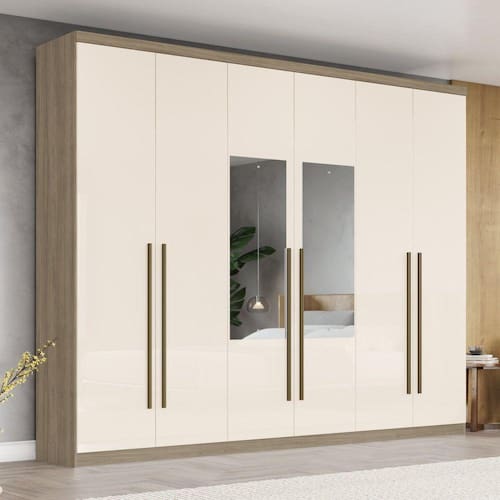 Guarda-Roupa Jade 6 portas possui amplo espaço interno e design inovador e diferenciado, espaço para roupas longas e maleiro interno, espelho, além de 3 gavetas internas com corrediças metálicas que garantem maior durabilidade ao móvel. É produzido em mdp de excelente qualidade e revestimento em impressão uv, garantindo qualidade ao produto. O Guarda-Roupa possui 6 Portas com dobradiças metálicas e puxadores em abs cromado, oferecendo mais durabilidade e trazendo mais charme ao móvel. O Guarda-Roupa tem altura de 2.300 mm, 2. 500 mm e 465 mm. Acabamento da Prateleira: Pintura Escala de Brilho da Prateleira: Fosco Possui Cabideiros: Sim Acabamento da Gaveta: Pintura Escala de Brilho da Gaveta: Fosco Material do Puxador da Gaveta: ABS Possui Organizador de Gaveta: Não Acabamento da Porta: Pintura Escala de Brilho da Porta: Brilhante Material do Puxador da Porta: Alumínio Altura do Espelho: 105 cm Ambiente Principal: Quarto codigo_ean: 7909903656853 Complexidade da Montagem: Média: pode ser montado por mais de uma pessoa e/ou necessite de maior conhecimento para montagem Cor: Rústico/Off White Cor do Produto: Rústico/Off White Cor Flex: Rústico/Off White Cor Interna: Trama Escala de Brilho: Brilhante Espessura do Espelho: 3 mm Fita Integrada: Sim Formato do Espelho: Retangular Gaveta com Chave: Não Guarda-Roupa Suporta Até (kg): 89 kg Itens Inclusos: 1 Guarda Roupa e Manual de Montagem. Largura do Espelho: 35 cm Linha ou Coleção: Jade Manual de Montagem e Instalação: https://product-hub-prd.madeiramadeira.com.br/905072/documents/3b3f0a62-cad1-4d1f-bd9d-07ec7ffde9e13roupeirojadecomkitespelho.pdf Material da Gaveta: MDP Material da Porta: MDP Material da Prateleira: MDP Material Principal: MDP modular: Não Montagem Flex: Sim Necessita Montagem: Sim Origem do Produto: Nacional Peso: 158,5 kg Peso Máximo por Gaveta: 3 kg Peso Máximo por Prateleira: 8 kg Possui Calceiros: 01 Possui Espaço para Vestidos Longos: Não Possui Espelho: Sim Possui Espelho Interno: Não Possui Ganchos: Não Possui Pés: Não Possui Portas: Sim Possui Prateleiras: Sim Possui Sapateira: Não Produto Montado: Sim Quantidade de Espelho: 02 Espelhos com Tamanhos Iguais Quantidade de Gavetas: 03 Gavetas Quantidade de Prateleiras: 05 Prateleiras Recomendações de Uso, Manutenção e Limpeza: Limpar com flanela ou pano macio seco, não utilizar produtos abrasivos, desengordurantes, álcool ou solvente. Não expor o produto diretamente à luz solar e à umidade. Sistema de Montagem: Parafuso e Cavilhas. Suporta Até (kg): 89 kg Tipo de Corrediça da Gaveta: Metálica Simples Tipo de Dobradiça/Corrediça da Porta: Metálica Tipo de Fixação do Espelho: Parafusos Tipo de Gaveta: Interna Tipo de Guarda-Roupa: Casal Tipo de Puxador da Gaveta: Externo Tipo de Puxador da Porta: Externo